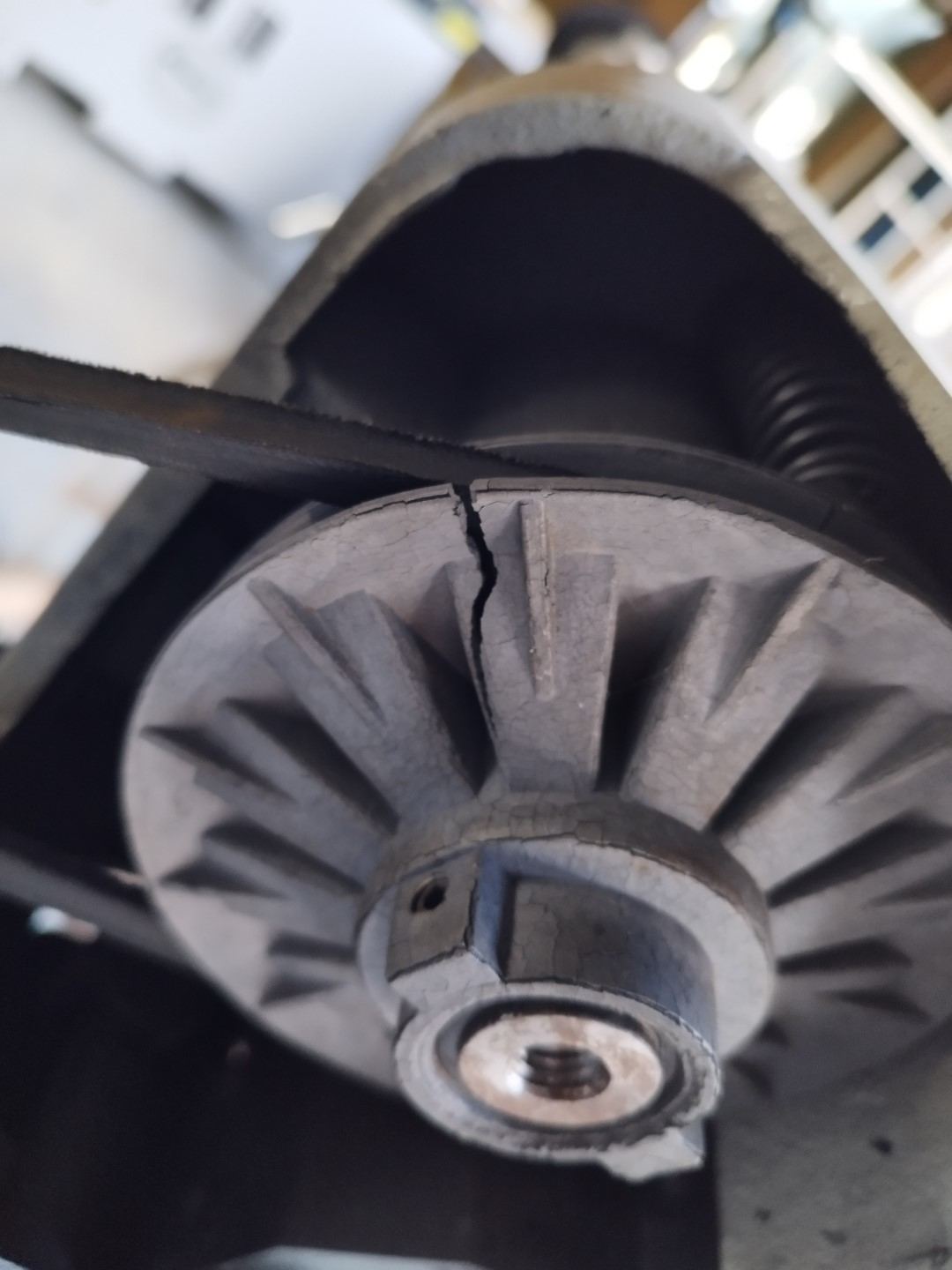 La poulie est félé et je pense que la courroie est un peu fatigué