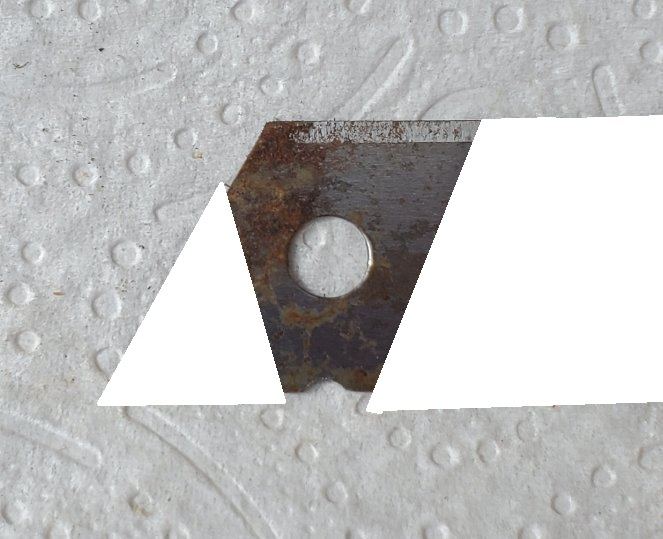 Perso, je repartirais de l'idée de ta lame de cutter, en utilisant le trou pour la visser au bout d'un tasseau, pour être plus efficace dans le mouvement. En retaillant à la meuleuse si besoin plus que mon dessin, pour une meilleure accessibilité. Un bon affutage, c'est 2 plans polis qui se rej ...