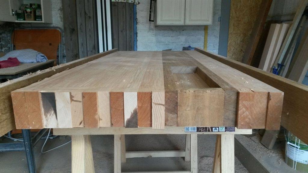 - Sujet : Etabli en hêtre, iroko et sapelli