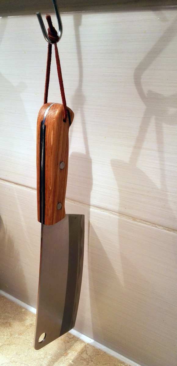 Parmi mes ustensiles de cuisine, un hachoir commencait à avoir le manche qui partait en biberine. Un manche en plastique recouvert de caoutchouc de mauvaise qualité... IMG_20140819_212034.jpg Donc pour remplacer ça, quoi de mieux que du bois... Un reste de plinthe (en chêne il me semble) devrait fai ...