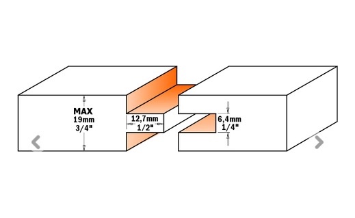 Si tu veux faire ce type d'assemblage : Le meilleur choix (si tu as de nombreuses pièces a assembler) est ce type de fraise : Avec une épaisseur de 24 mm tu dois pouvoir ajouter des rondelles (pour faire la seconde passe pour la languette, ou travailler avec une seule fraise et faire 3 passes) pour aller au-delà de la cote de 19 mm (cas de la fraise du site vendeur), ou trouver une autre fraise de même type adaptée à cette épaisseur (car dans ce cas, tu restes en languette de 6,35 mm).