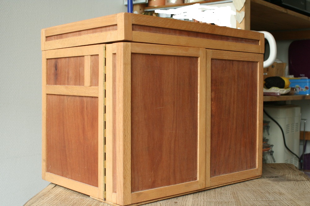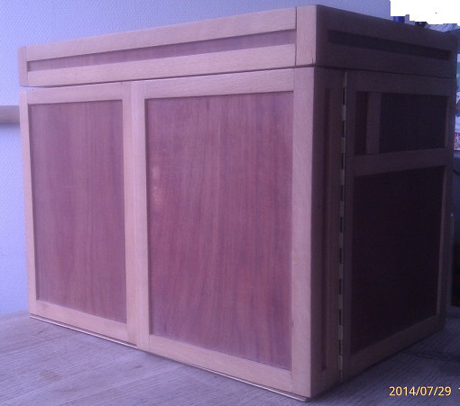Le "squelette" est en hetre et les parois sont en contre plaque de 5mm essentiellement pour limiter le poid de la boite.