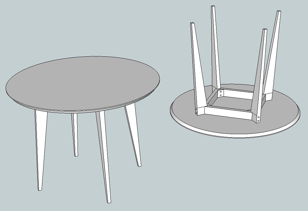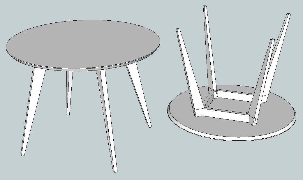 Toute la finesse du dessin vient de l'angle assez prononcé des pieds, et du fait que le bas des pieds arrive quasiment sous le cercle du plateau. En donnant moins d'angle aux pieds comme ça, on dirait qu'ils sont presque droits, ça change complètement la table.