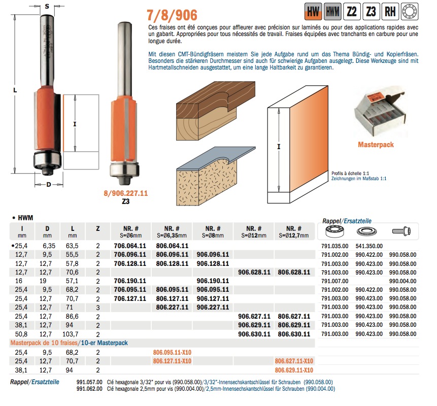 Je m'y perd juste un peu dans la gamme de fraises chez CMT, elles sont bien toutes à carbure ? Ils ne font pas de fraise en HSS si je ne me trompe pas ?