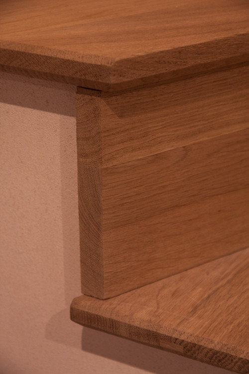 J'aurais besoin d'un petit coup de main pour décider de comment je vais faire la finition d'un escalier que je viens de réaliser, sachant que c'est du chêne et qu'il me sert à accéder à l'étage de la maison (SDB et chambres à coucher).