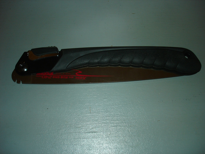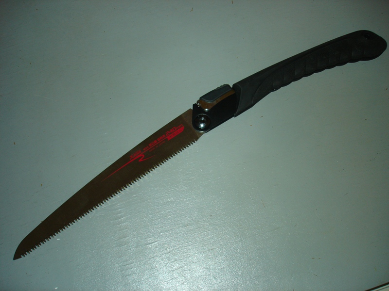 Pour ceux qui ne connaissent pas, voici une scie d’élagage. La lame se range dans le manche et peut s'ouvrir sous 2 angles différents. Longueur de lame : 24cm. Longueur dépliée : 50cm.