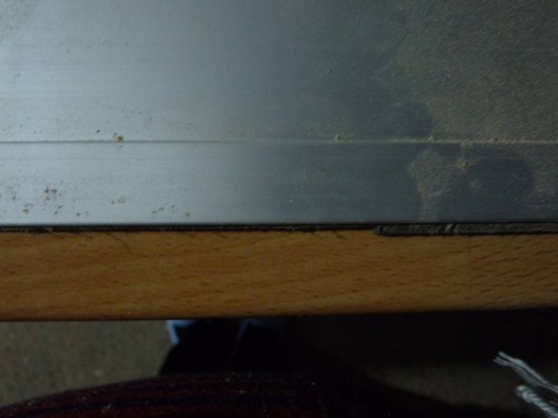 En fait elle l'effleur tellement bien que la première fois que tu l'utilise il faut même que la scie coupe cette lèvre ! C'est même pour ça que sur une de même plaque la lèvre était un peu en biais ! Si tu veux une cote je dirai 0 mm ou 1/10 de mm ! Cette lèvre c'est vraiment la ou tu aura ton trait de coupe !
