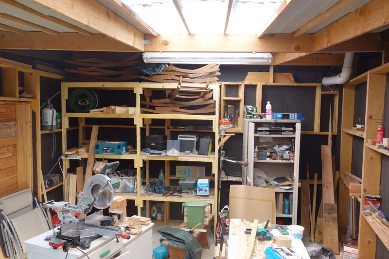 Mon atelier doit faire 22m², mais avec plein de bordel dedans : tondeuses, barbecue, parasol qui ne sert à rien, étagères, jouets des enfants...