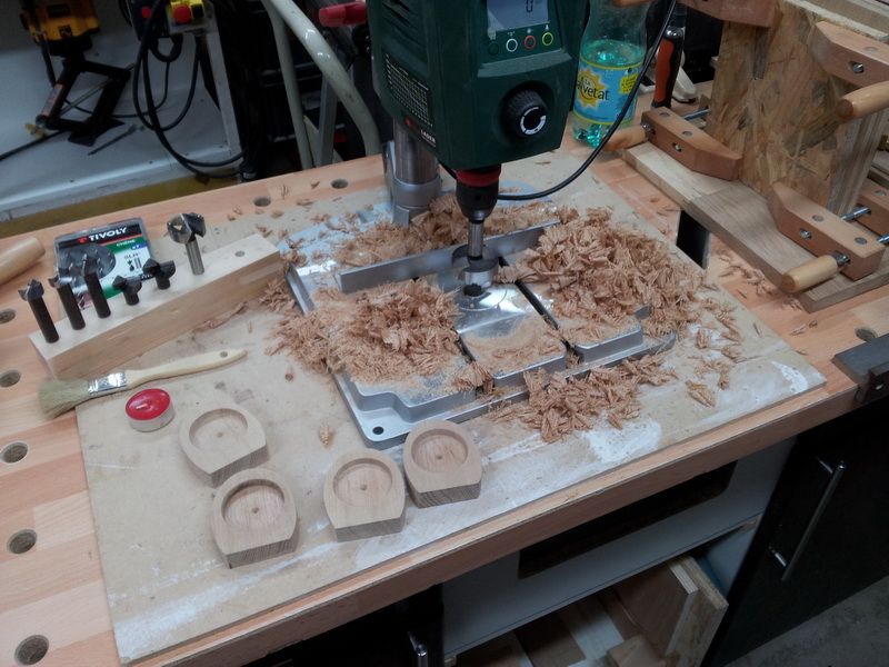 * Réalisation de l'emplacement de la bougie à la PAC + fraise forstner diam 48mm : (le trou laisé par la fraise au centre sera rebouché avec un mélange sciure/colle)