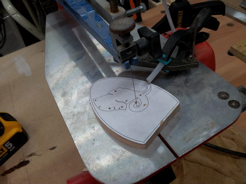 * Chantournage de la tête d’éléphant : (j'ai commencé par la découpe de la trompe)
