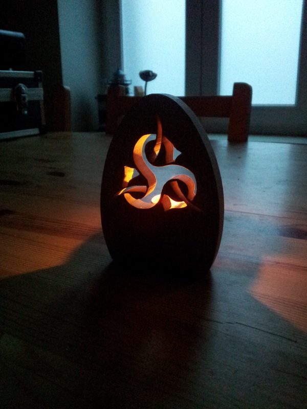 Pour ce projet, je suis parti d'une étagère en chêne massif (90x23.5x1.8cm) achetée à Leroy Machin. J'ai débité les différentes pièces du support via 2 gabarits réalisés en MDF (partie horizontale qui recevra la bougie et la partie verticale où sera réalisé l'incrustation de résine). J'ai imprimé les formes à l'échelle 1 (j'ai mis les fichiers en pièces jointes) et les ai collé grâce à une colle repositionnable "Loisirs & décoration" de chez Sader puis j'ai réalisé les découpes à la scie à chantourner. J'ai ensuite utilisé de la résine de couleur de chez Pébéo achetée à cette adresse pour la rouge http://www.creavea.com/resine-gedeo-cou ... 20717.html et la bleue http://www.creavea.com/resine-gedeo-cou ... 20716.html. Une fois la résine sèche, j'ai poncé à la ponceuse à bande pour enlever le surplus de résine. J'ai arrondi les angles à la défonceuse sous table, réalisé le ponçage, collé les 2 parties et appliqué la finition ("Huile et Protection" tente Wengé et transparente de chez V33).