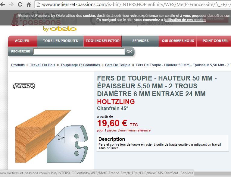 il existe en plusieurs pente, attention la coupe faite ne fait pas forcement 45° à cause de l'angle d'attaque du PO donc pas forcement utilisable pour un assemblage à onglet mais pour ton cas pas de soucis