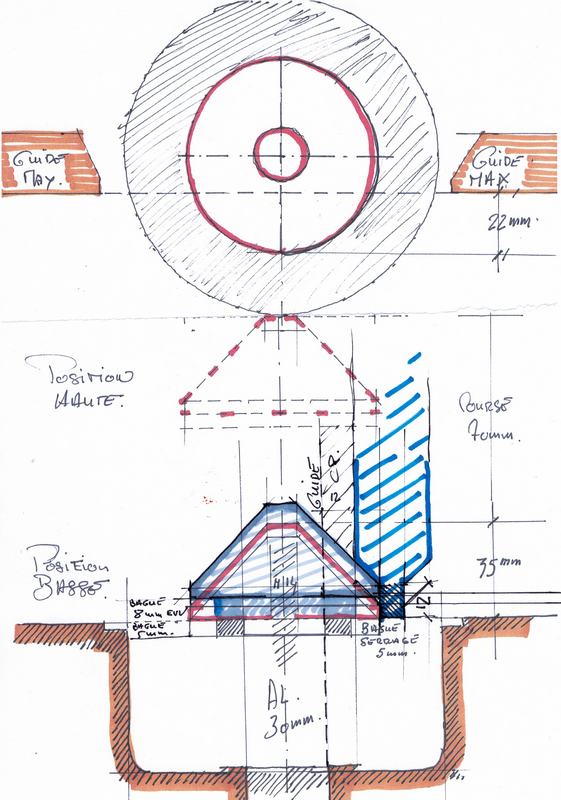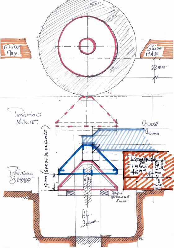 Il ne reste plus qu'a te faire le guide, avec une bonne lambourde dressée (pareil, une petite échancrure pour passer sur la molette avec quelques mm de jeu et que la languette vienne appuyer dessus quand même.