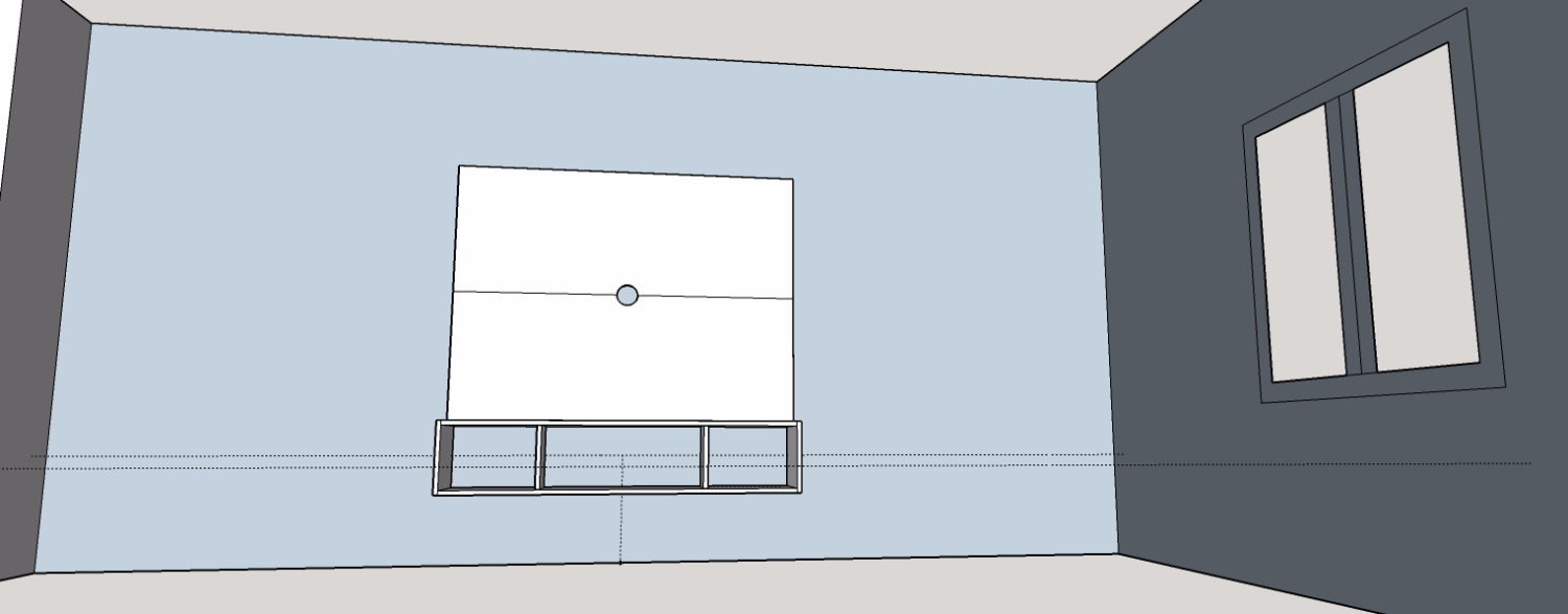 J'ai donc l'intention à brève échéance de fabriquer un meuble TV suspendu, et je me suis lancé dans ma première modélisation SketchUp, je pense ne pas trop mal m'en sortir...