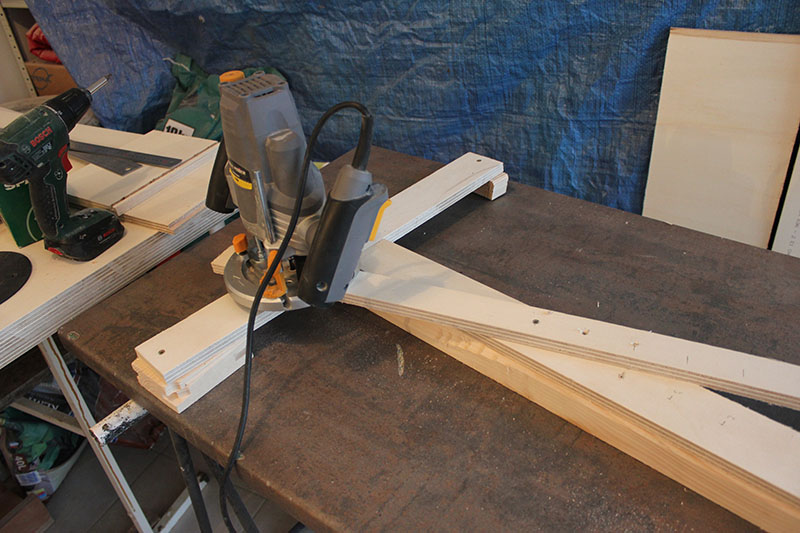 Prochaine phase, réalisation des rainures d'assemblage à la défonceuse. Rien de bien sorcier de ce coté là. Même si j'ai une défonceuse bas de gamme, elle fait le boulot.