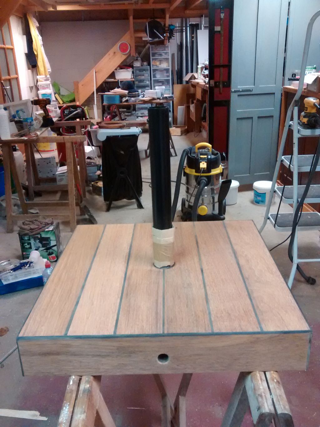 Vu que la météo est de la partie je me dis qu'il est temps que je finisse le pied de parasol qui n'est pas arrivé à temps pour cette été.