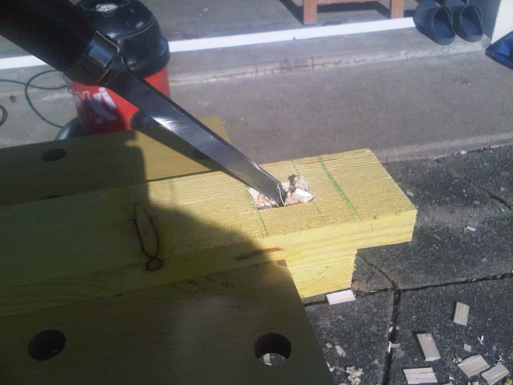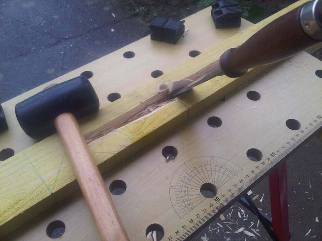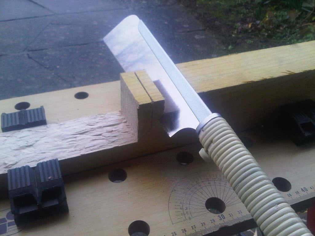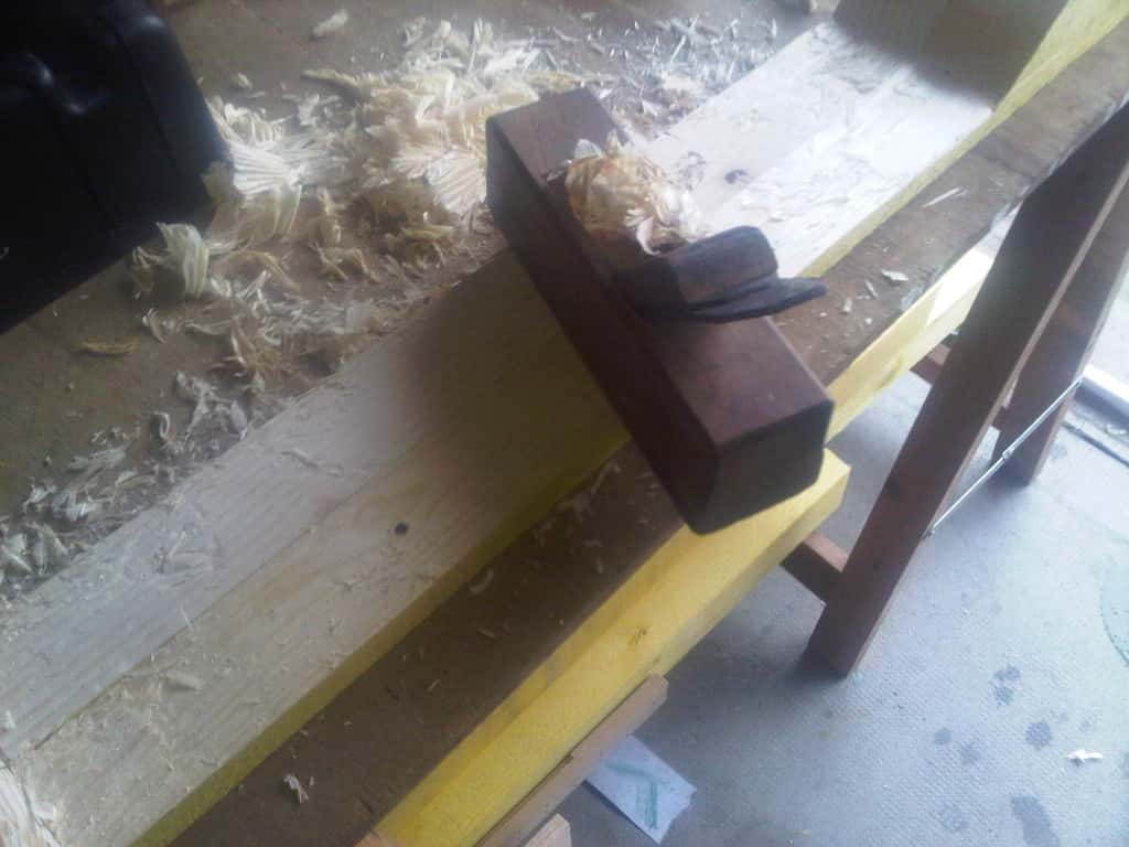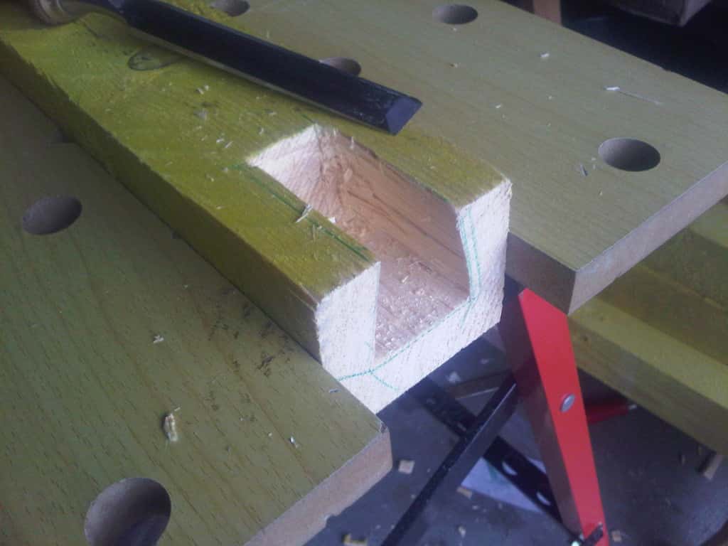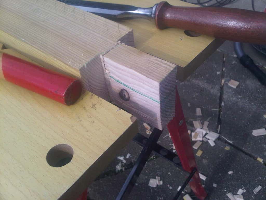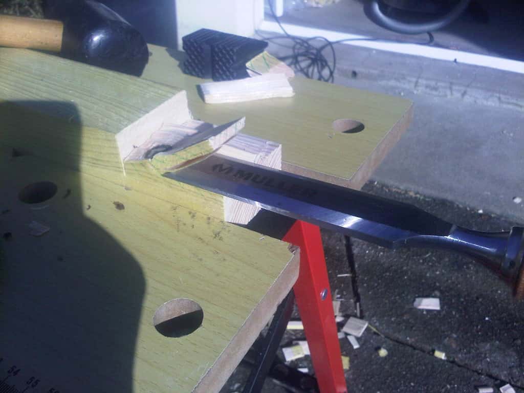 une fois rentré et les chevrons bien rangés sous mon "établi", je me suis dit qu'il serait quand même pas mal de tester l'affutage de mes ciseaux (sans pierre à eau) et de m'entrainer aux queues d'arondes, y'en a quand même 8 à faire... téméraire le bonhomme pour un premier projet