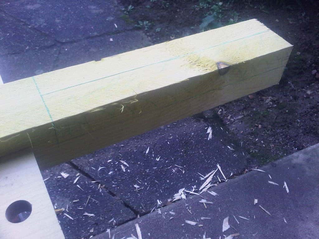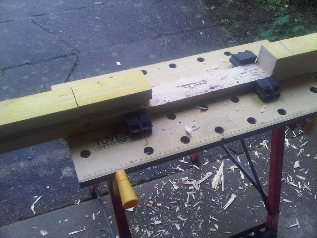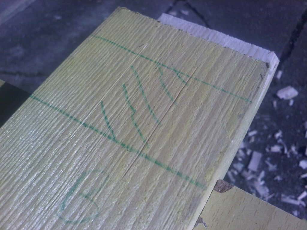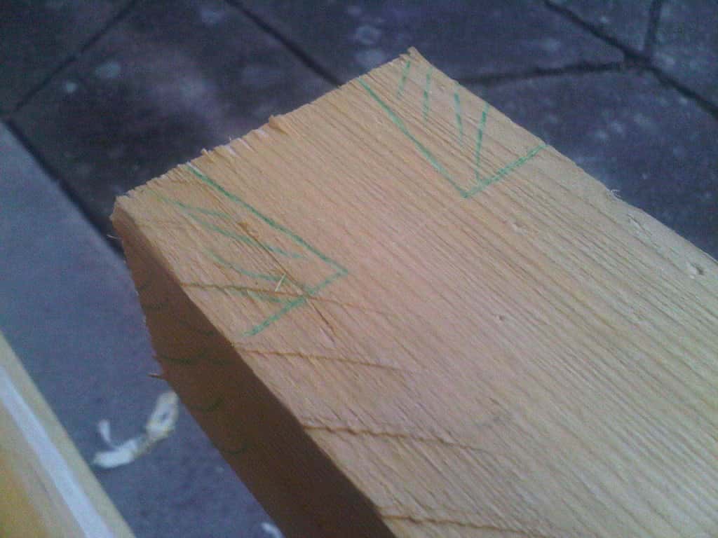 Pour la petite anecdote, j'ai pris les chevrons à BricoDépot, je vais dans la cour des matériaux, je repère rapidement où sont les chevrons et je vois qu'ils sont sur un rack à 2m de hauteur... Je vais voir un gars avec un manitou, je lui demande si y'a moyen de m'en descendre et il me dit que non, faut que je me débrouille tout seul avec un escabeau. J'en ai ch*** pour les sortir ces 4 chevrons de 5m. Passé cette aventure, me voila dans mes 4 chevrons de 5m, un autre de 3m et une voiture dont le coffre ne dépasse pas 1m50. J'ai eu droit à une petite séance de sciage sur le parking, sous la pluie... La misère.