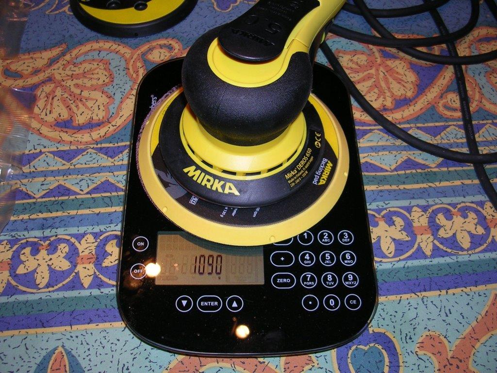 C'est bien 1kg pour la Mirka Deros 650 vs 1,2 pour la Festool (qui est aussi plus volumineuse).