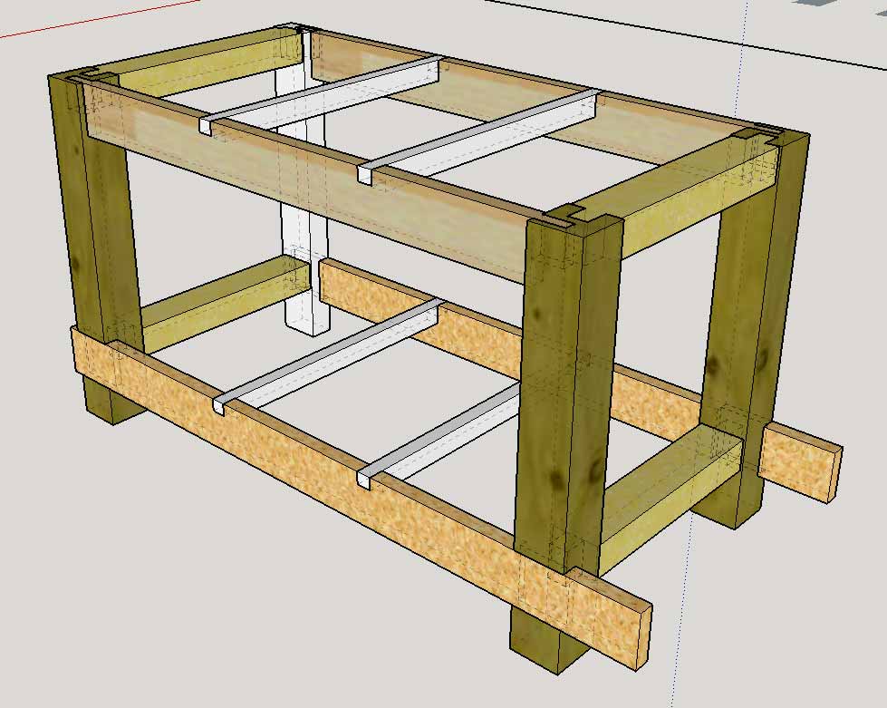 Regarde l'exemple de l'établi de samuel. C'est exactement ce qu'il a fait : queues d'aronde sur les traverses et il n' a ni besoin de colle ni de vis.... Et tout est démontable !