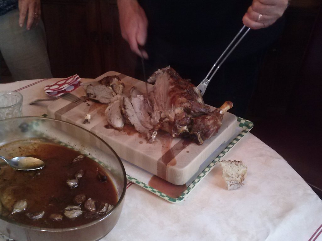 Quant aux rainures, je suis plutôt comme GrandJu, je préfère ne pas en avoir, même si je peux comprendre le pb que tu as eu : t'aurais du couper le gigot avant le transport, puis essuyer les jus, dans la cuisine, puis l'apporter découpé, fièrement sur ta planche à tes convives.