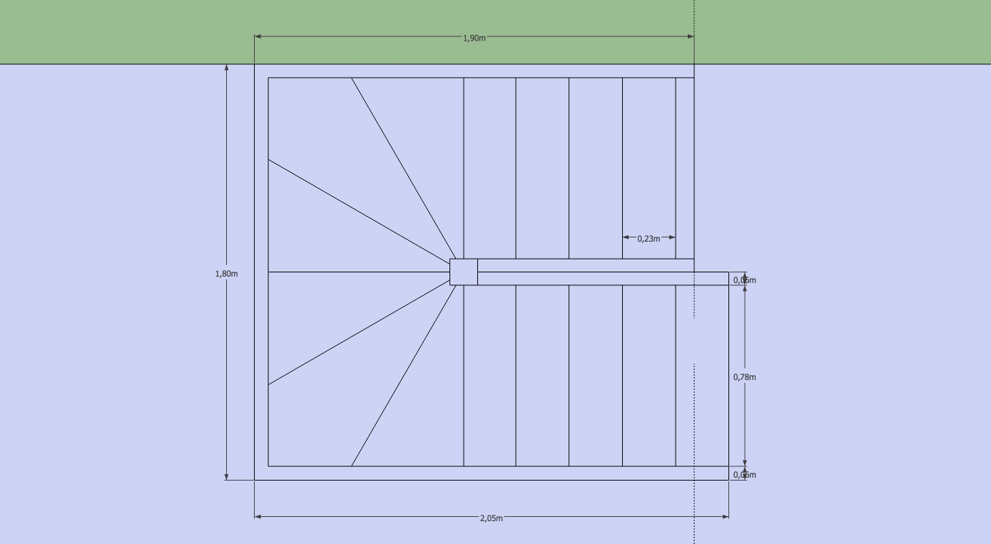 Je n'ai pas représenté les limons, juste le poteau central.
