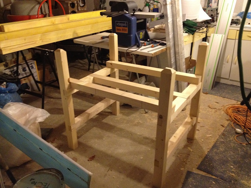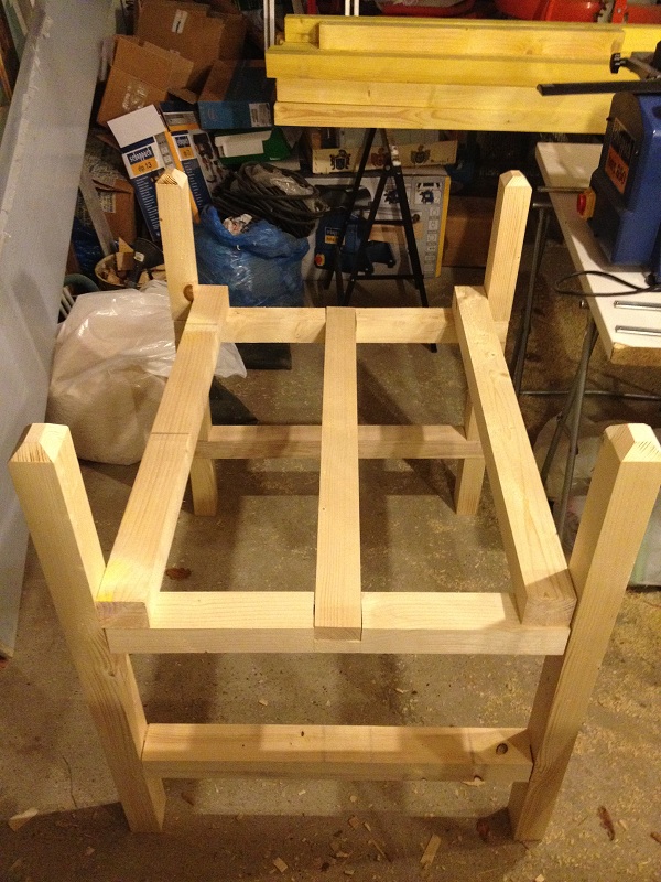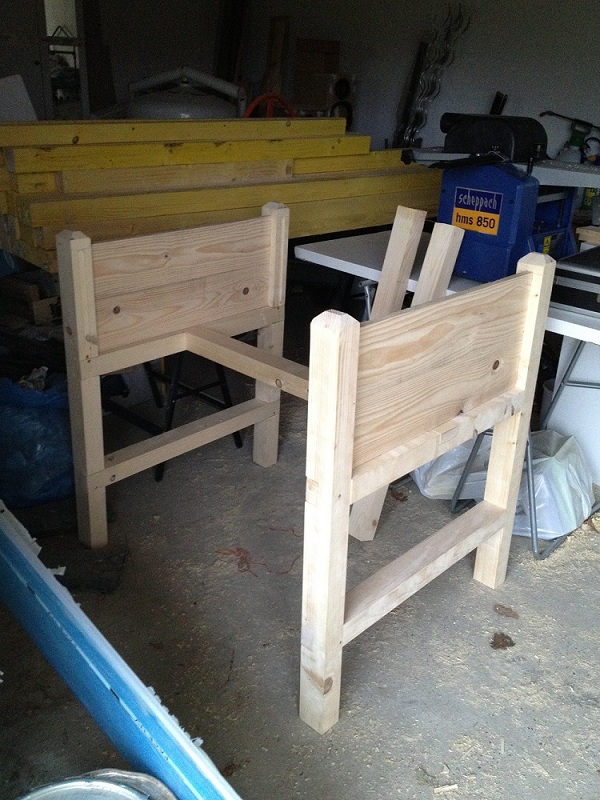 Elle sera peinte pour résister à l'eau et le bout des pieds seront passer au blackson. (pas très écolo mais je n'ai pas trouvé une autre solution pour me passer de bois autoclave classe 4... Si vous avez d'autre idée)