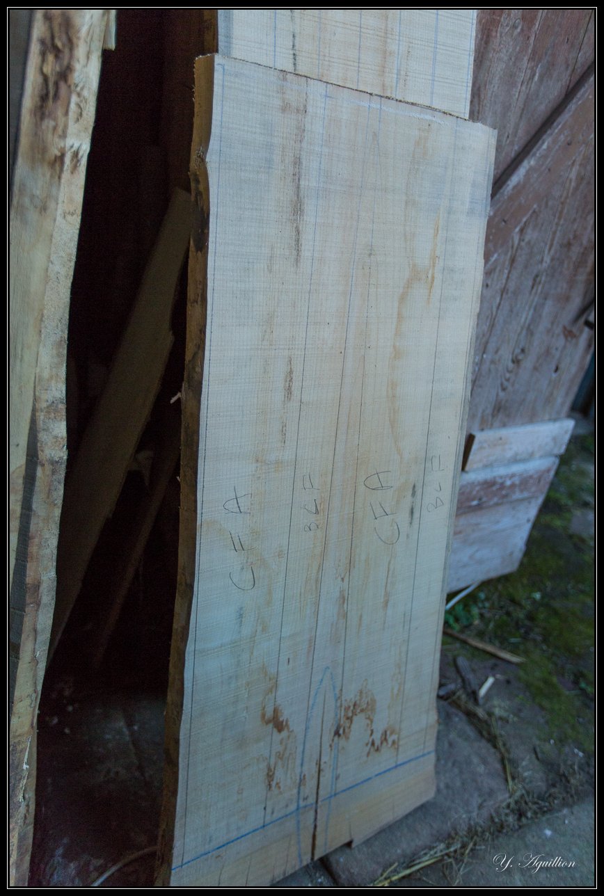 Aujourd'hui j'ai raboté quelques planches, sachant que mes plateaux sont censés être du 27 mm, et que dans mes plans j'ai prévu du 24 mm, ça c'est le premier détail ou j'ai un peu merdouillé, et ensuite je me rend compte également que certains morceaux sont trop en "banane" pour obtenir au final des épaisseurs viables (en gros sur ces morceaux mal fichus je vais finir à 18 ou 19 pour un objectif de 24 ....)