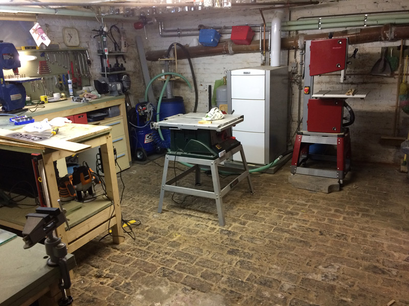 J'ai attaqué l'espace sous la partie gauche, c'est en cours (armoire pour l’électro-portatif.