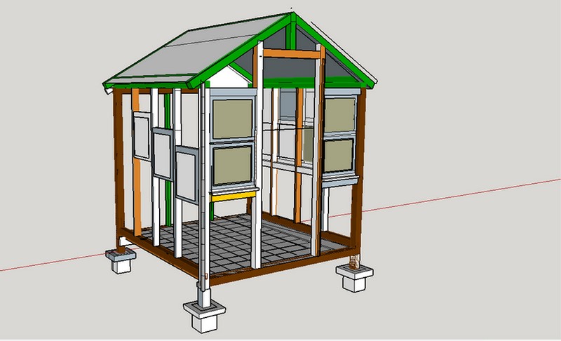 je vais laisser 2 ouvertures pour des fenetres et une pour la porte. apres plusieurs hésitations je ne mettrais pas de vitre ni de plexy au fenetre pour diverses raisons, simplement je vais créer des volets exterieurs pour pouvoir fermer le soir pour eviter que la pluie ne rentre et que les chats rentrent.
