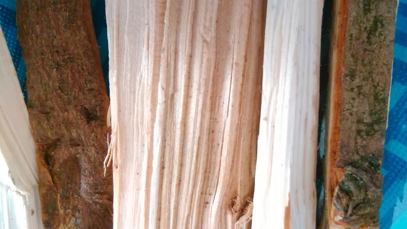 Il y a des chances que ce "petit bois d'allumage" soit constitué de différentes essences, des reliquats de coupes en fait.