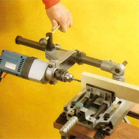 Il y a une discussion en ce moment sur une perceuse colonne à main où j'ai proposé un schéma rapide et ultra simple, qui peut tout à fait être adapté à une perceuse électrique et pour des percages en bout de bois: