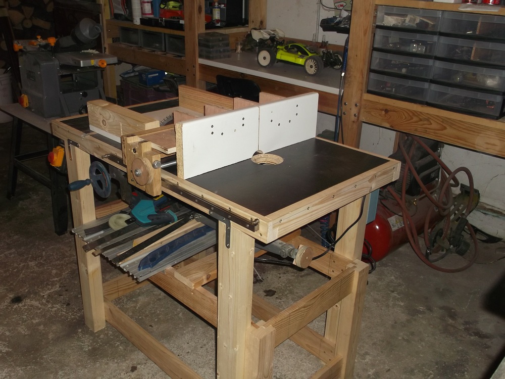 J'aime particulièrement ton ensemble scie / défonceuse sous table : à ce sujet, pourrais-tu préciser comment tu as réalisé les rails de guidage qu'on voit sur les bords de ta table, je n'arrive pas à comprendre de quoi tu es parti ?