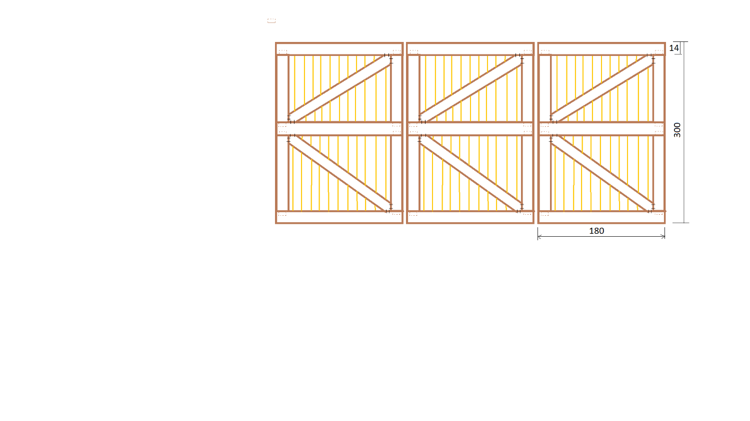 Pour cela je souhaite réaliser 3 vantaux de 1.80x3m (voir dessin) avec un cadre en chêne (pièces marron) de 14cm de large par 35mm d'épaisseur. Ainsi que les "diagonales".
