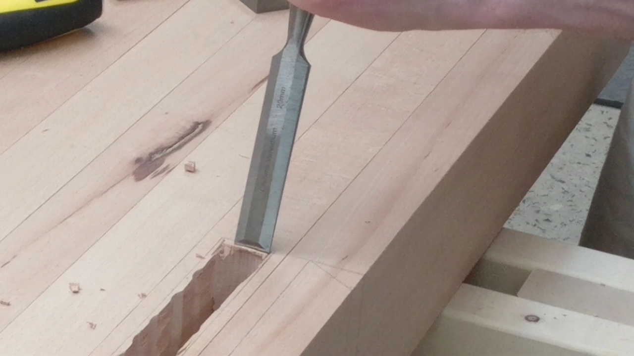 Bon, je vous avais dit qu'il commençait à être grand temps de creuser les grosses mortaises, alors je m'y suis mis ! Enfin !