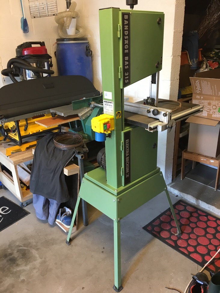 Elle appartenait à un vieux Monsieur, décédé il y a quelques années, médecin de profession, féru d'ébénisterie (il avait pris des cours depuis tout jeune). Sa veuve m'a montré quelques meubles réalisés par son mari ... juste WoW : des meubles moulurés avec des sculptures et des incrustations. Un véritable artiste ! Son atelier était impeccable, la plupart des machines (combiné, scie radiale, etc) étaient cependant déjà vendues.