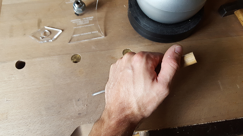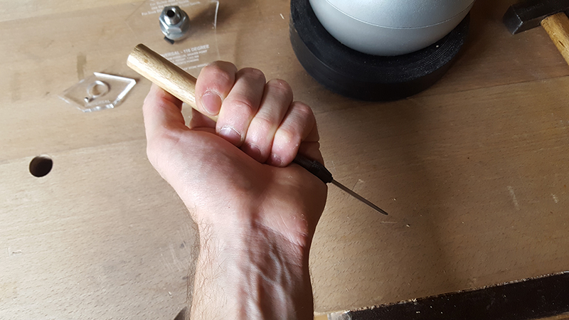 Je n'ai pas pris le temps de trouver mieux, mais sachant que le burin doit pouvoir être retiré pour rentrer dans le gabarit d'affûtage, ça doit être démontable. Le boulet de graveur peut se trouver entre 100 et 150€ sur la Bay. C'est fabriqué en chine mais la qualité est très bonne. Pour info c'est une copie du modèle de chez GRS qui lui coûte dans les 500€ ! Pour ce qui est de la technique, voilà la manière dont je tiens le burin.