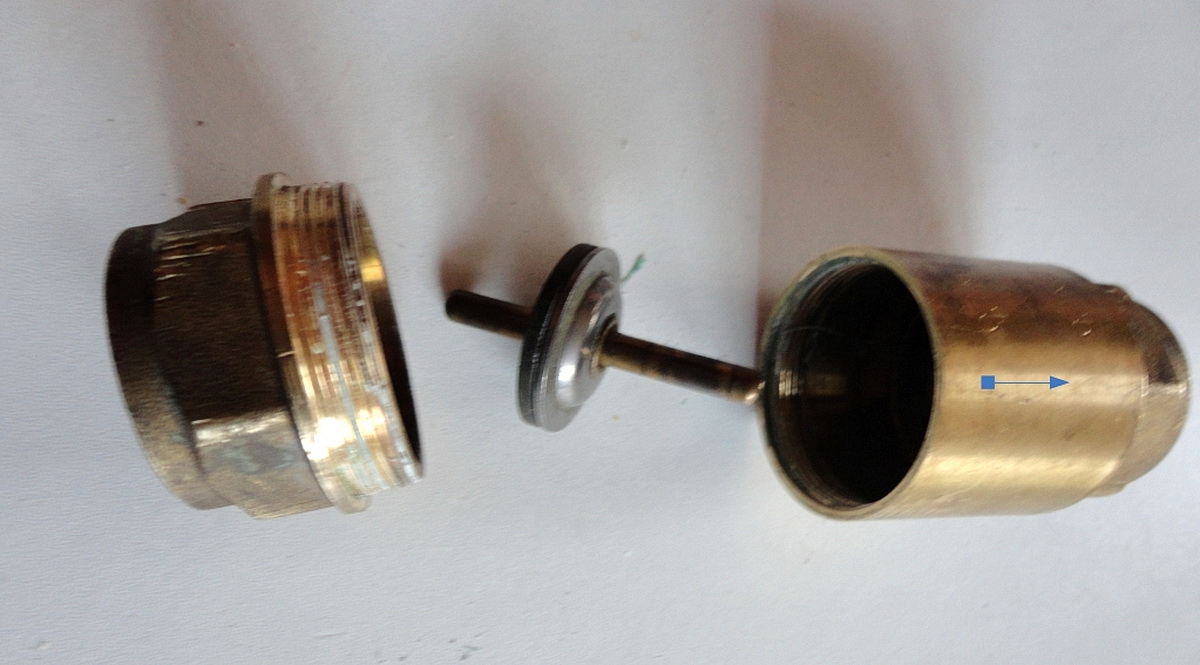 La jonction vissée des deux parties constituant le corps en laiton n'est plus visible après décolletage final du diamètre extérieur du clapet, mais avec clé et une bonne rallonge, et en plaçant aux deux extrémités du clapet des raccords mâles en 3/4" pour éviter l'ovalisation du clapet pendant cette opération, il est possible de dévisser une partie du corps. J'avais déjà réussi cette opération dans le passé.