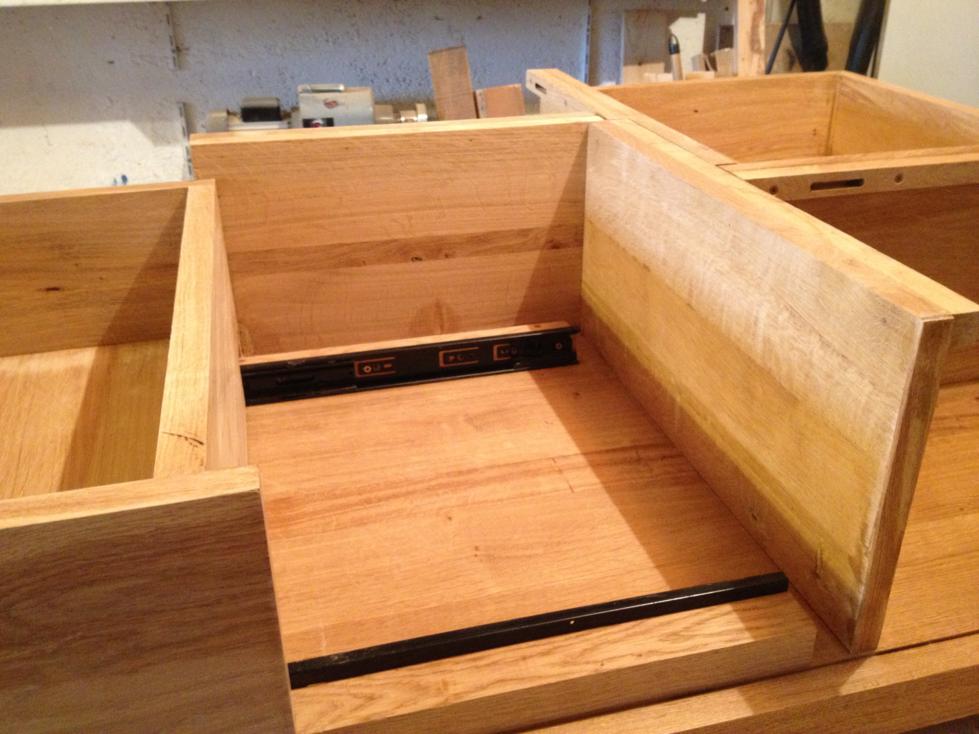 toute la difficulté est de positionner correctement ces équerres pour que le côté du tiroir affleure les plateaux haut et bas.