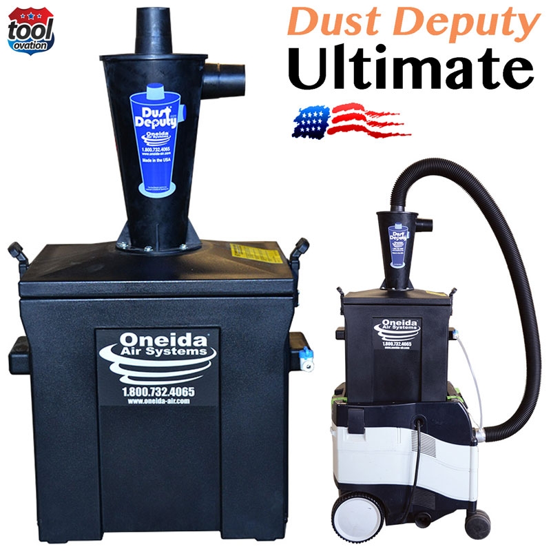 Depuis, j'ai aussi acheté un Dust Commander DLX (donc version antistatique), l'efficacité est supérieure à mon modèle sur les poussières et les copeaux de rabot à main (le diamètre inférieur est le même que celui d'entrée), identique lors de l'utilisation sur le combiné. (je n'ai pas de photos, je n'ai toujours pas fabriqué les adaptateurs nécessaires, les tests ont été effectué en raccordant les éléments avec du ruban adhésif).
