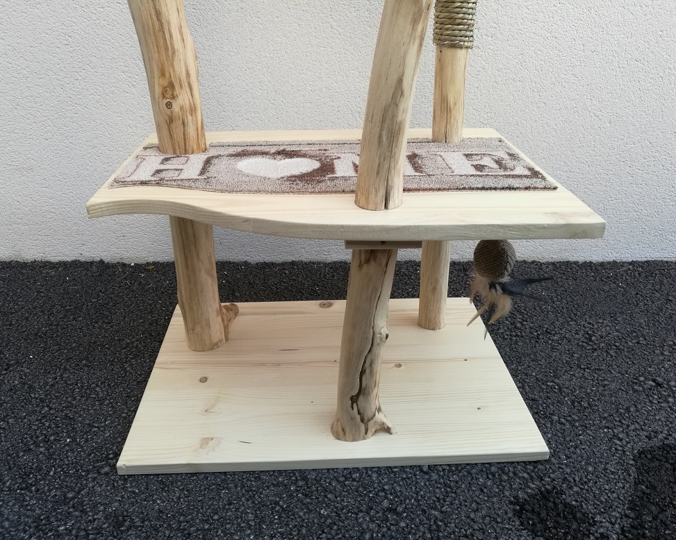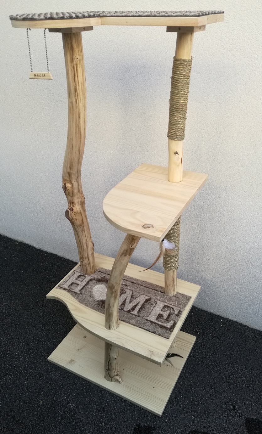 Voici un arbre à chat fait de vieilles branches d'acacia.