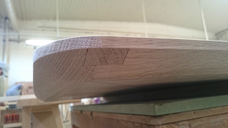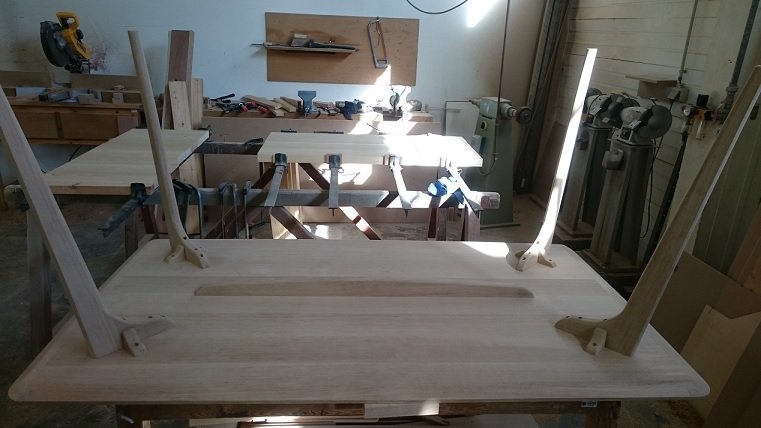Y a des emboitures en bout de table, pour ridigifier le plateau, et une traverse centrale en longueur (collée). C'est la première fois que je fais ça, je verrai bien si ça tient dans le temps ou pas. Maintenant je me pose la question de la finition...