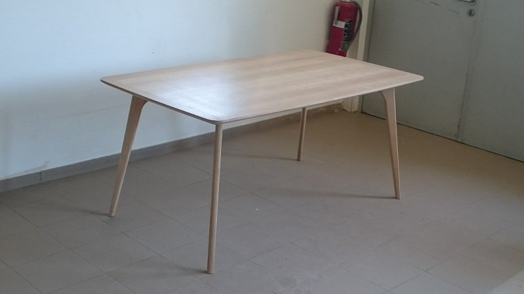 Après un modèle "test" en sapin, j'ai fait cette table de salle à manger en chêne, histoire de faire un truc PAS en sapin pour une fois.
