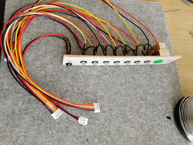 J'ai soudé tous les connecteurs au modules, il reste à faire les câbles de communication inter boîtier, tous les circuits intégrés (une vingtaine entre 16 et 32 pattes chacun, toutes les résistances ( une centaine), les transistors (une quinzaine), divers petits composants par ci par là...