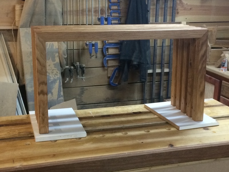 Le banc est en chêne et ormeau, le clefs en frêne et noyer, avec également du tube de cuivre en 18mm et des faux tenons en contreplaqué véritable.