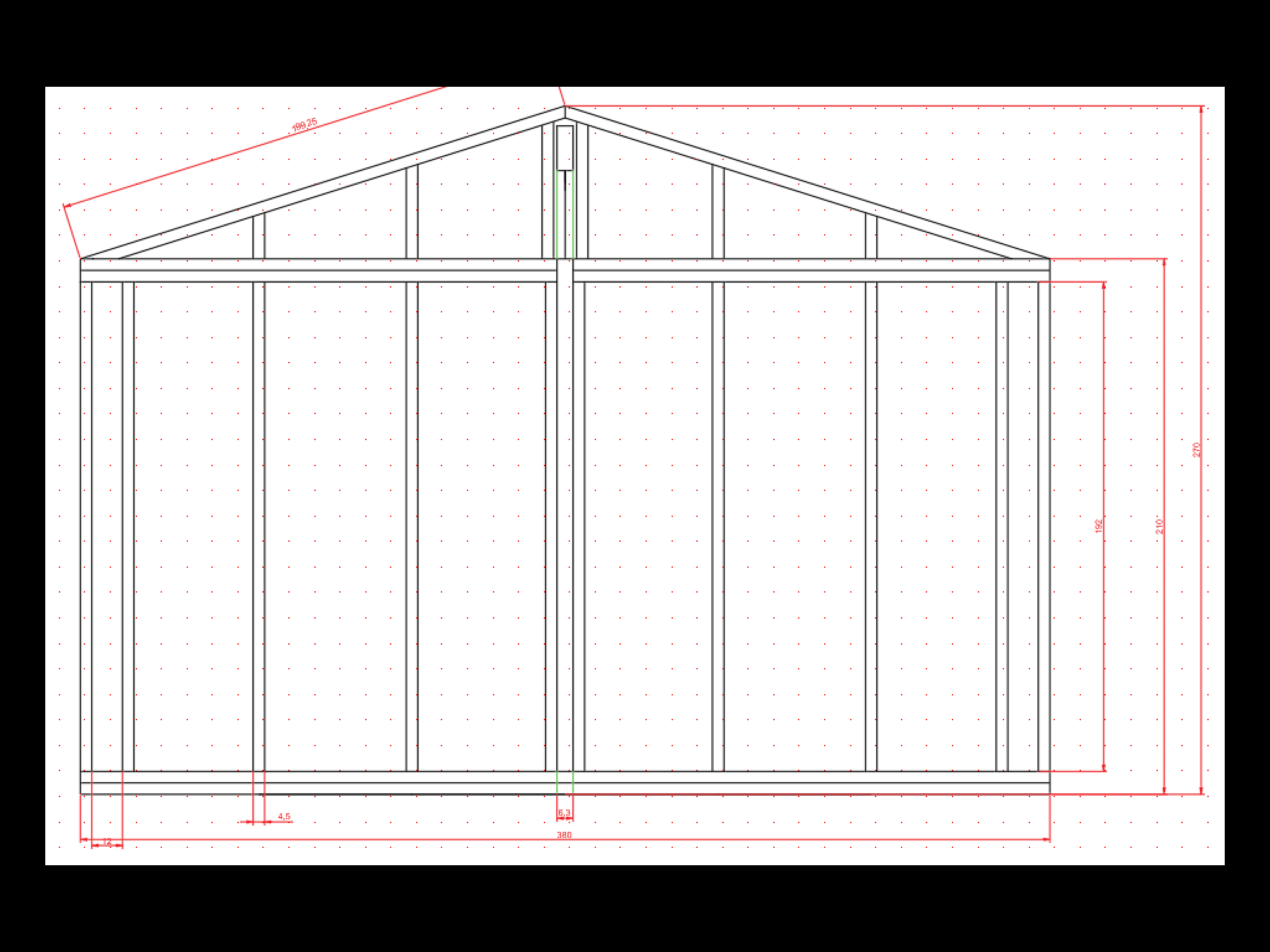 2. l’espace prévu pour porte de garage (son dimensionnement pour une porte standard à bascule 200x240, les montants, les traverses, lisse etc.. cette façade me pose un problème global, manque de hauteur entre haut porte et charpente toiture, d’ailleurs dans ce dessin il n’y a pas de lisse haute ...
