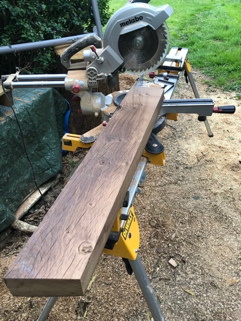 J’ai scié les pieds a leur longueur définitive et selon l’angle choisi de 106 degrés. Après avoir scié les trois premiers pieds, un truc m’a tout à coup quelque peu piqué les yeux