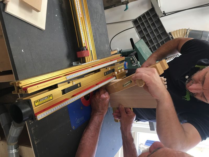 Arnaud qui attaque la réalisation des queues droites avec le guide Incra...