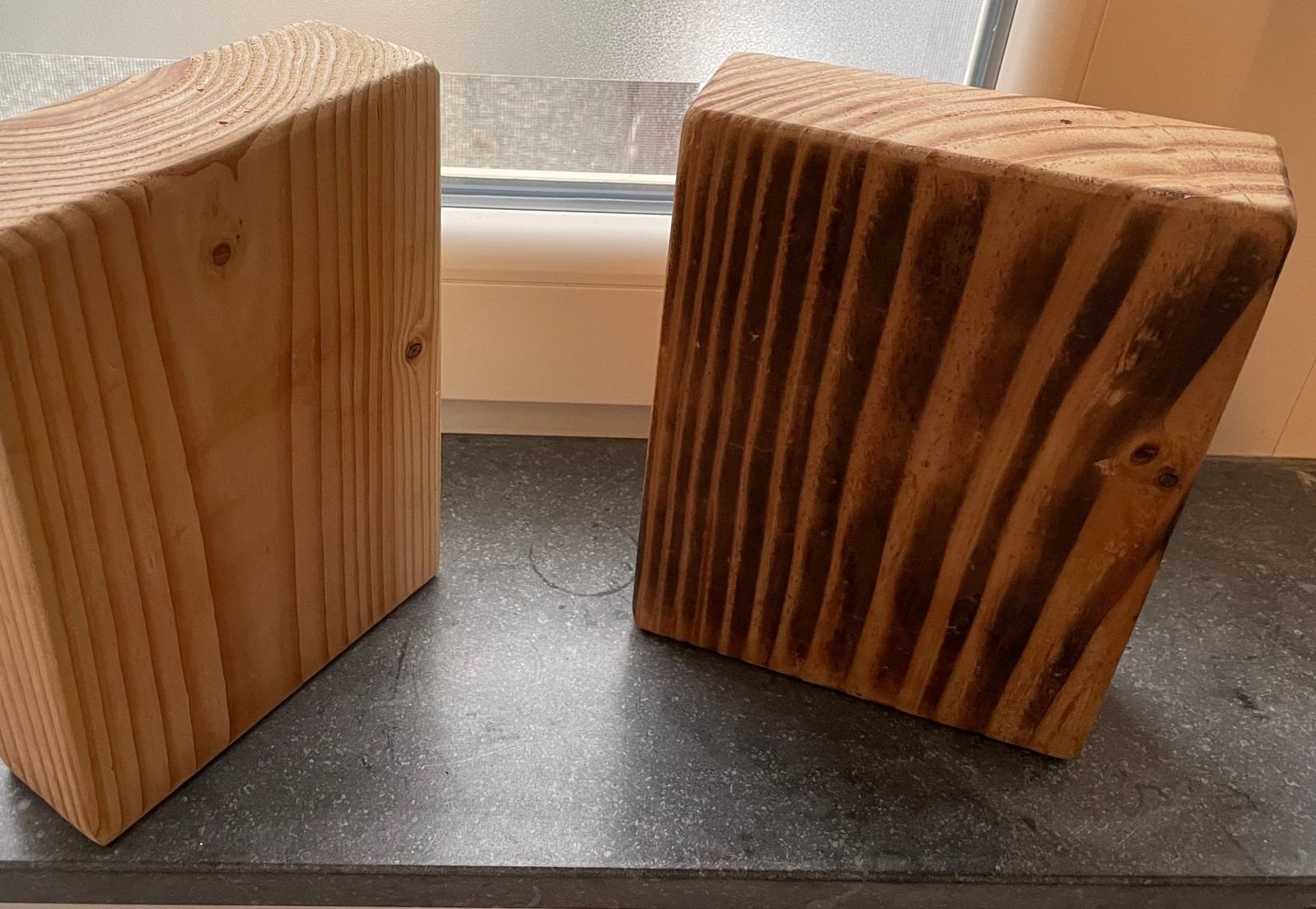 je récupère des morceaux de poutres pour en faire des blocs de yoga, et j'arrive à ceci: