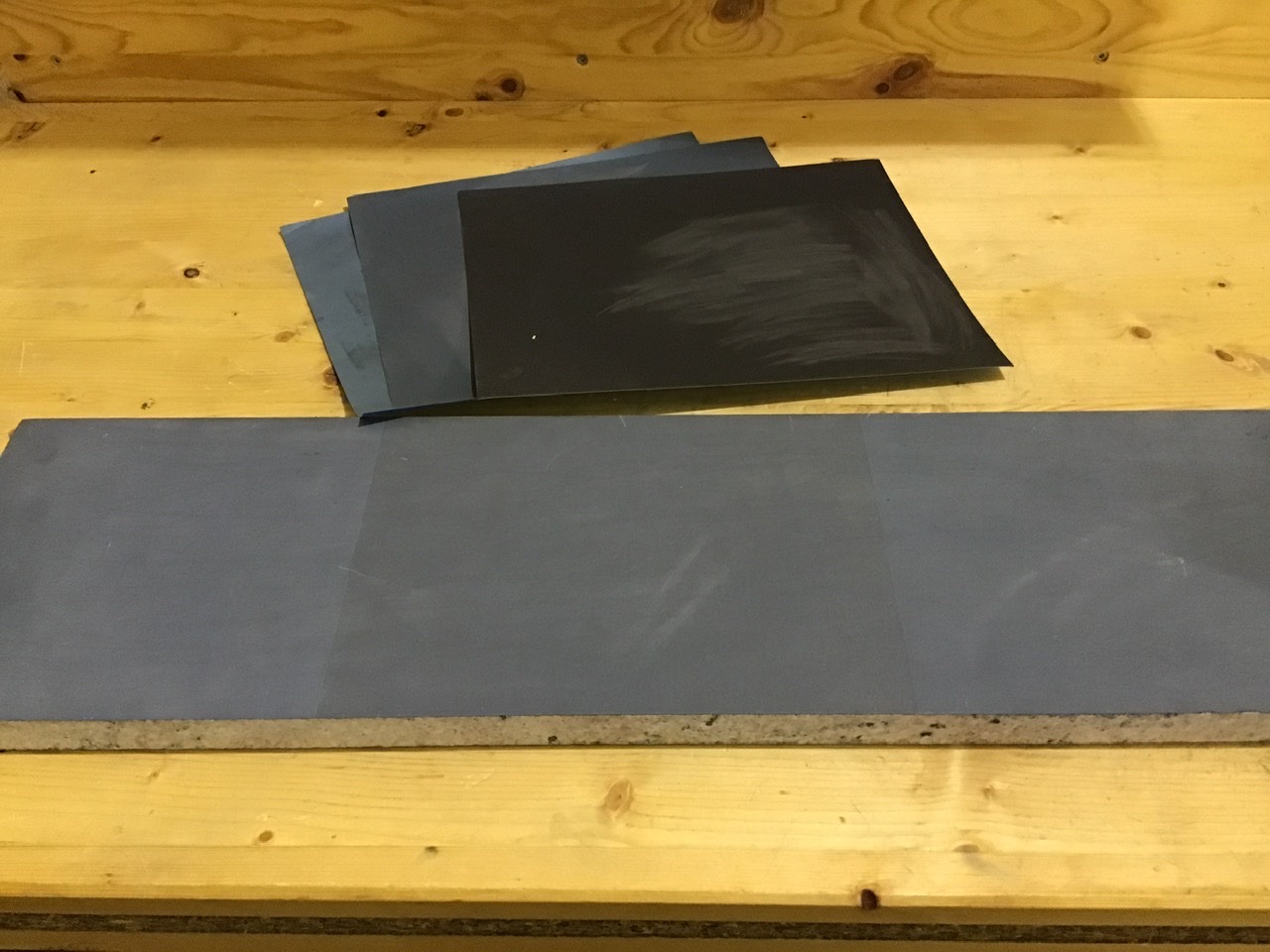 Mais l’abrasif que j’ai collé sur le marbre, je ne l’utilise que comme support pour d’autres feuilles. Je ne m’en sers pas directement pour affûter, justement pour ne pas avoir à le changer.